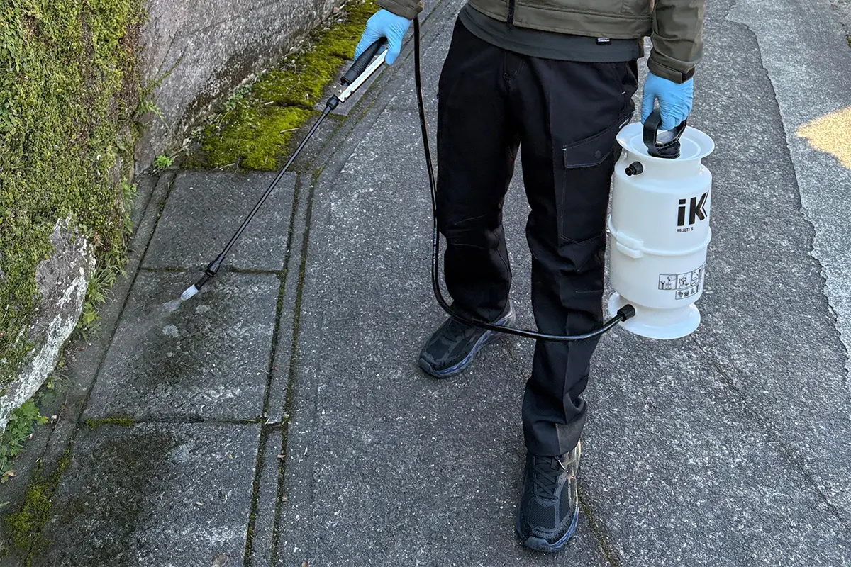 - 石垣やブロック擁壁の隙間に薬剤処理する